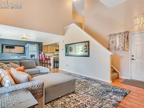 Welcome to this stunning 4-bedroom, 4-bath home nestled in the heart of Stetson Hills, boasting over 2100 sq ft of living space. Minutes to Powers and Peterson SFB with a little longer drive to Fort Carson, this home is near to lots of amenities! With no HOA, this property offers the perfect blend of convenience and freedom. Step into a home with soaring vaulted ceilings in the primary living space with lots of natural light. Enjoy the ample room sizes, designed for comfort and functionality. This two-story home comes with a fully finished basement which includes the fourth bedroom and full bathroom, offering flexibility and additional living space. The primary suite treats you to a private balcony, leading to a spacious backyard, providing an ideal setting for gatherings and outdoor entertainment. Discover the perfect blend of style, comfort, and convenience in this Stetson Hills gem. Carpet in basement and upper level to be replaced prior to close.