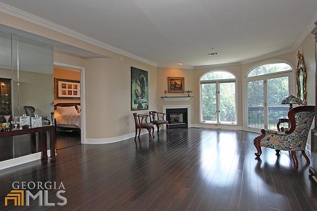 BEGIN EVERY DAY with a view of the lake and its surrounding natural trees and foliage in the heart of Dunwoody. This condo boasts a lake view from both Bedrooms & living room. An open floor plan with foyer, living room, & dining room. Large master Bath off spacious master Bedroom. Bright eat-in kitchen with custom tile flooring. Bonus room could be used as office. New flooring throughout. End your day relaxing on the covered patio while watching geese swim by. Two assigned covered parking spaces, step-less entry +1 storage unit. Conveniently located to shopping & restaurants.