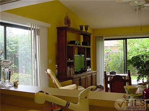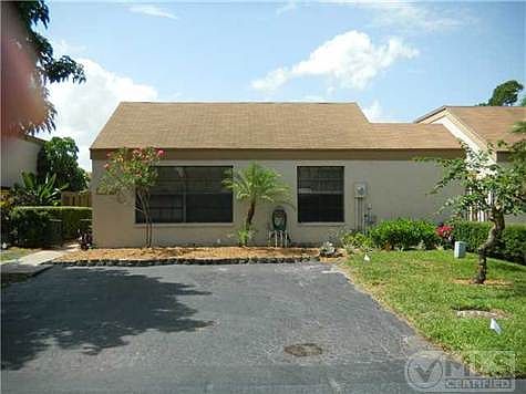 Bright & light well maintained just painted 3/2 fully tiled one level Villa with fenced patio and garden. Split bedrooms. Plenty of closet space. Community pool, tennis & handball. Pets under 80 lbs.Great location.Refrigerator doesn't convey
