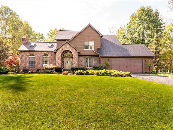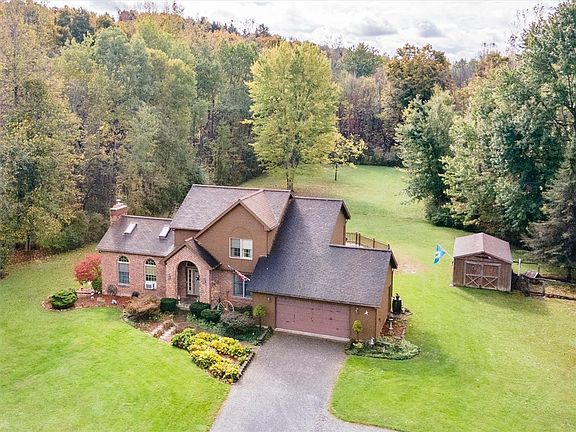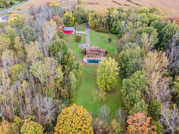 Privacy awaits at this stunning Colonial home nestled on over 7 acres! Offered for the first time on the market, this home features a grand 2-story foyer and a spacious living room with a new wood stove. The first floor includes a convenient laundry room and kitchen with all appliances included. Owner's suite complete with a walk-in closet and full bath. A rear slider opens to a generously sized inground pool surrounded by a beautiful stamped concrete patio, with a new pool pump installed in 2024. The property also includes a 40'x44' pole barn with 12' doors and an additional 16'x24' shed for ample storage. New chimney liner recently installed. 200 Amp electric service. Your private oasis awaits!