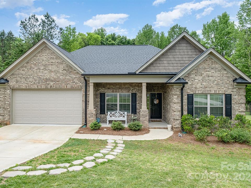 Welcome to Grey Hawk Ct. This charming 3-bed, 2-bath home was built in 2021. Enjoy the split floor plan, open concept design, and full-brick construction. The well-appointed kitchen features stylish cabinetry, granite countertops, stainless steel appliances, and a convenient breakfast bar for casual dining. The primary suite boasts a huge shower and a dreamy walk-in closet. Secondary bedrooms provide ample space for guests, a home office, or hobbies. Step outside to enjoy your covered back porch and oversized patio, perfect for al fresco dining, morning coffee, or simply enjoying the wildlife in the area. The spacious garage offers. This home is a serene retreat within just a few miles of all Concord has to offer, making it the perfect place to call home. Don't miss your chance to experience the unparalleled lifestyle this property has to offer!