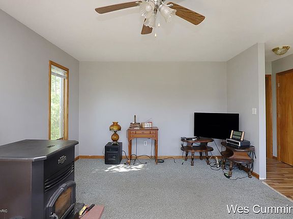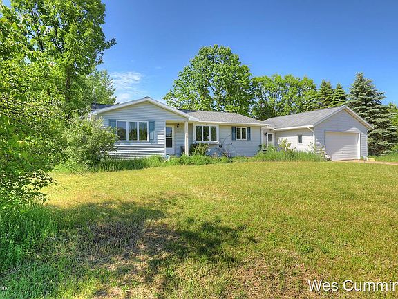 3 bedroom ranch on 1.8 acres, short distance from town on a paved road. All appliances and pellet stove included. House sits well back off the road. Full walkout basement, 2-stall attached garage and large rear mudroom/entryway. Furnace just two years old, roof seven years. Close to 12,000 acre Flat River State Game Area.