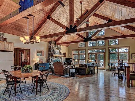 HIAWATHA LAKE LODGE - Offered for sale is "Hiawatha Lake Lodge" built in 2010 by a premiere Manitowish Waters builder. The lodge has 4 bedrooms, 2.5 baths and totals 3055 sq. ft. This Southwest facing home was recently completed with an additional bathroom, fireplace in game room, deck trim, electrical updates, humidification system, all new Benjamin Moore interior paint, additional wood trim and landscaping. The lodge also features a spacious 2.5 car garage, screen porch and 88' of lakeside decking! The home was intentionally designed to provide panoramic lake views which will are nothing short of magnificent! 2017-18 is the first period for full time use of this home and it has the look and feel of being just built! The lot has 101' of level sandy shoreline on this 36 acre deep water high quality lake with a fire pit and seating area close to the water's edge. Location is great as well only 5 miles from downtown Manitowish Waters.