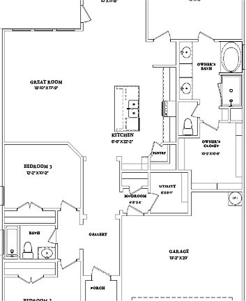 The Chamberlin has a spacious great roomthat can be seen from the gourmet kitchenwith custom-built cabinetry and raised panel"picture frame" doors thanks to a seamlessblending of the two main living areas, so youcan enjoy cooking a delicious dinner for youand your family utilizing your new Frigidaireappliances while watching the children playor do homework in the great room. A nook istucked to the side of the kitchen with a viewof the backyard and you can escape to naturewith a door leading out to an optional coveredpatio and your outdoor spaces. The owner'sretreat is located at the back of the home foradditional privacy and includes a spaciousmaster bathroom with a deluxe shower anda large soaking tub. The Chamberlin haseverything you need for a cozy single-familyhome with plenty of storage space and anattached two-car garage. Relax. You're Home.