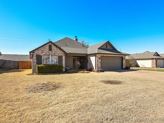 This beautifully updated home offers the perfect blend of comfort, style, and convenience. Featuring soaring ceilings and an open floor plan, the spacious living area is warm and inviting. Gorgeous wood-look flooring, fresh paint, and modern interior and exterior lighting add to its charm. The kitchen boasts granite and butcher block countertops, ample storage, and a stylish design. The primary suite is a true retreat, complete with a spa-like private bath and an expansive walk-in closet. Step outside to your private backyard oasis, where a reinforced deck with privacy shutters sets the scene for relaxation in the hot tub. A new privacy fence ensures seclusion, while recent updates, including a new roof (2023), gutters (2023), and a WiFi-enabled garage door opener (2022), add peace of mind. Perfectly located, this home is less than 20 minutes from downtown Tulsa and Keystone Lake, offering the best of both city convenience and outdoor adventure. Don’t miss this incredible opportunity—schedule your showing today!