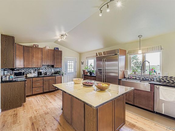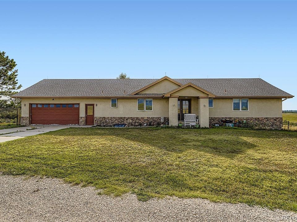 This bucolic 40 acre property offers endless possibilities and sweeping Front Range & Pikes Peak views. Bring your horses, critters, gardening tools and recreation of all kinds. The property includes a large outbuilding with multiple stalls and fenced pasture. Move indoors to find an open, sun filled floor plan with gleaming hardwood floors on the main level and bamboo flooring at the lower level. Get cooking in the beautifully remodeled kitchen with granite counters, stainless steel appliances, and huge apron front sink with the option to dine alfresco on the expansive back deck. Relax and recharge in your Primary bedroom with a spa-like on suite bath. This is your own tranquil oasis with private well, septic and super efficient geo-thermal heating and cooling system. Follow your wanderlust on miles of trails and to nearby park settings or take a short trip over to the excitement of Denver or Colorado Springs.