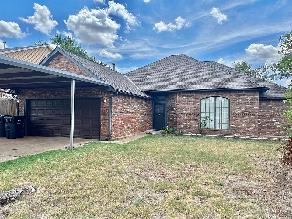 Great 3 Bed 2 bath home located minutes from Tinker Air Force base. Two car garage with carport. Updated tile flooring throughout! Raised ceilings in Kitchen, Living Room, and Master. Master bath has been updated to include an extra-long jacuzzi tub, double vanities, toilet, and glass shower surround. Large walk-in closet off master bath. Kitchen updated in 2019 with new appliances, backsplash, can lights, and granite kitchen counter tops. Ceiling fans throughout. Updated Bryant A/C and heating system. Plywood flooring has been added to the attic above garage for more storage. Includes two large storage sheds in backyard. Sprinkler system, and ADT alarm system. Tenant pays utilities. 1 year lease minimum. 30 day notice required before vacating. Pets allowed with non-refundable pet deposit. No smoking allowed