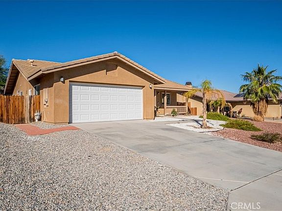 Desirable Turtle Rock community home conveniently located off of Adobe Rd which leads directly to the 29 Palms MCCS base. This spacious home features 4 bedrooms and 2 baths. The primary suite has 2 ample walk-in closets and an attached bathroom with dual sinks. The family room has a brick fireplace for you to warm up with during the winter months. The Kitchen has stone countertops with a functional peninsula for you to gather around and a walk-in pantry. Tile throughout the home and carpeted bedrooms with ceiling fans. An oversized ac unit will keep the house cool. Outside the front yard has easy drought tolerant landscaping. The backyard has a greener feel with a covered patio. Indoor laundry and a finished garage complete the home with everything you could need! Let’s not forget it has easy access to Joshua Tree National Park, Oasis Mara Hiking area and many more hiking trails. Come check it out for yourself!