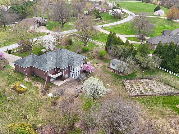 Tucked away on a quiet private road, this all-brick walkout basement home offers 4.5 acres of privacy, mature landscaping, fruit trees, permanent gardens, and a location that's hard to beat. It's just six minutes from one of Springfield's booming retail developments--including Menards, Walmart, the new Target (currently under construction), and a growing list of restaurants and shops--but once you're home, you feel a world away.Inside, the main level features 10-foot ceilings and real hardwood floors that run through the entry, kitchen, and hallways. There are four bedrooms and two full baths upstairs, including a spacious primary suite with a raised ceiling, double vanity, jetted tub, and walk-in shower. On the other side of the house, you'll find three more bedrooms and a second full bath.The kitchen has oak cabinets, an eat-at bar, stainless appliances (including an apron sink), and opens to both a private back deck and a sunroom with its own heat and A/C. Natural light pours through the home, and with wide hallways and three-foot doors on the main level, the whole space feels open and roomy.Downstairs, the finished walkout basement is set up for fun--think pool table, movie night, or game days--with 9' ceilings, a second gas fireplace, a third full bath, and another sunroom. You'll also find access to an oversized fourth-car garage, perfect for a workshop, lawn equipment, parking, or storage.Outside, you'll love the mix of open yard, lush greenery, established gardens, and producing fruit trees--including apples and a cherry bush. There's also a large shed for all your gardening tools and outdoor extras. And yes, it really does have a white picket fence.Located in the highly rated Republic School District, this is a well-cared-for, spacious home that's ready for its next family. Whether you're looking for space, privacy, or an easy commute, this one offers the full package.