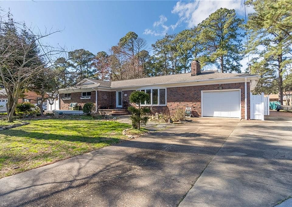 Welcome home to Virginia Beach's sought after Lake Shores neighborhood! This beautiful ranch home boasts over 2,000 sq. ft of living space set on a luscious, park like setting. Tons of upgrades including gleaming quartz counters, new kitchen flooring, new range and dishwasher, and more. Your kitchen is the heart of the home with its extra large bar/counter to gather and entertain. 3 bedrooms plus a bonus room with added bath! Would make a great studio, additional bedroom, home gym or however you need the space! Lovely wood floors and FP with wood stove. Primary bath with tiled shower and floor and double vanity. This brick ranch is set on a private .5+ acre with extensive landscaping, garden areas, multiple brick paved patios, front deck, and trees including peach, maple, camelias, cherry, weeping cherry and more. Near beaches & bases with easy interstate access. Freshly painted and waiting for you to call your own. Riding lawnmower can convey with acceptable offer.
