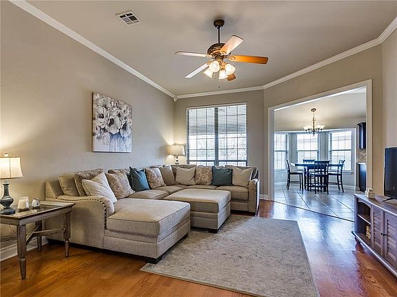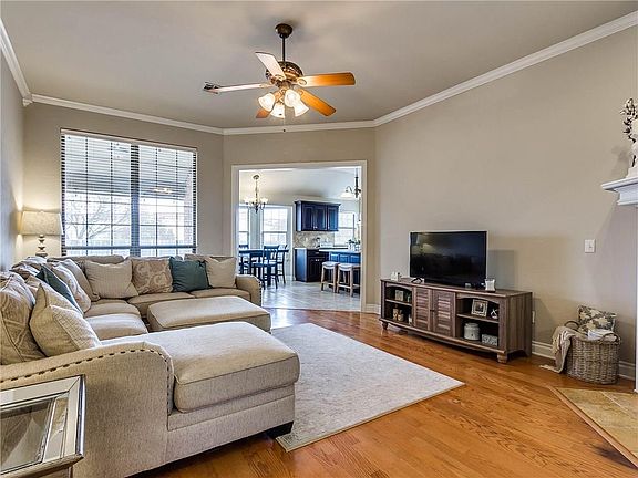 Dynamic home just minutes from Tinker AFB, Quiet & Beautiful gated Community!!! 3 Bedrooms & Study Hardwood floors through out,Cultured Marble window sills, Crown Molding, etc. HOA Fee includes all Lawn Care, Greenbelt maintenance, Security System, Common Area Maintenance & Beautiful Stocked Fishing Pond . Kitchen has Solid Surface Counter w/Large Island & Pantry. Spacious Master Bedroom w/Sitting area, Ceiling fan, Access to Back Patio. Master Bath w/ Walk-in Closet,Whirlpool Tub,Separate Shower,Double Vanities. Storm Shelter in Garage. Covered Patio & Huge Backyard to enjoy!! but you don't have to Mow!!!! This home sparkles and shines with pride of ownership move in ready!!!