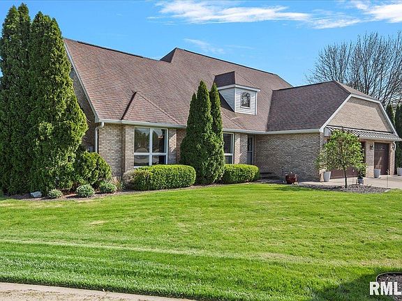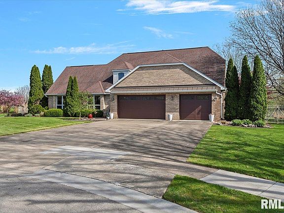 Unbelievable outdoor spaces to enjoy and entertain in this immaculate 1.5 story home featuring 4 bedrooms. Ideally positioned at the end of a cul-de-sac on 3/4 of an acre fully fenced and overlooking the 15th fairway of Panther Creek Golf Course on one side and an idyllic hobby farm on the other. Step inside the soaring foyer and view the expansive formal dining room to your left with a built-in custom hutch featuring lighted, glass-front cabinets. The kitchen is a chef's dream with a Thermador range/oven with hood and custom soft close cabinets, granite, and tile backsplash. Step out to the covered patio spanning the back of the house and connecting to the sunroom. It features a built-in natural gas grill and outdoor kitchen area. In cooler weather, warm up by the fireplace in the cozy central living room. Down the hall, you'll find the laundry room leading to the 3 car garage, the first guest bedroom and the extra large primary suite on the main floor. Upstairs features the other 2 roomy bedrooms, tons of closet space and another full bathroom. The basement is an escape from the grind with a rec room, media room and storage space to spare plus another full bath! Updates include water heater in 2015, HVAC units 2013-2017, sump pump with water back-up 2023 and fresh paint throughout. Pre-inspected for buyer confidence.