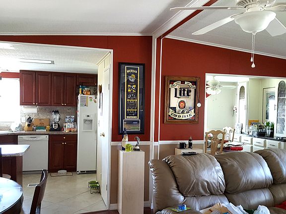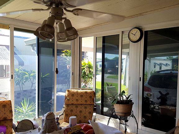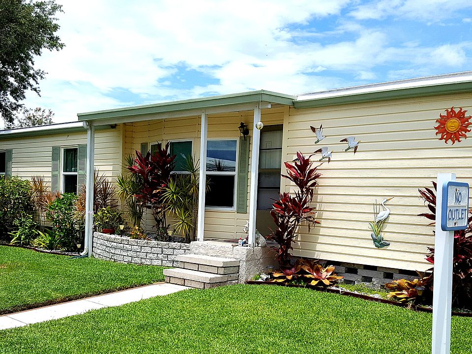 Beautiful and Well-Maintained Home in Windmill Manor Park on a Corner Lot! This Home 1,250 square foot home has a Brand-New Roof, Central-Air is 2-3 Years Old, Windows in House and Lanai 3 Years ago, Laminate Flooring and carpet the last 3 years, Ceramic Tile Master Bathroom with Shower, Sink, Cabinet, and new Shower Base. The 2nd Bathroom was all redone with a Tile Surround, Sink, and Cabinet. There are new Tie-Downs installed, all new Vapor Barrier under home, Kitchen was redone with Cherry Cabinets, White Sink, Ceramic Tile Floor, and Appliances, along with an Indoor Laundry (in the 3rd Bedroom). There is a Sprinkler System on 3 different Zones, Ceiling Fans throughout, Vaulted Ceiling in Living Room, replaced Carport Posts, all painted inside and out, Driveway was painted a few years back, All Landscaping was redone on all 4 sides of home, Garden area on side of Lanai, Ceiling Fan added in Lanai, and replaced downspouts from gutters. Sprinkler System on Reclaimed Water. Large 2 Car Carport, and RV Parking available. You can't ask for too much more! Windmill Manor Monthly Dues include: Basic Cable, Lawn Care, Water/Sewer, and Trash. There is a remodeled Clubhouse with a Large Pool, Shuffleboard Courts, and plenty of Activities throughout the week. This Park worth the Monthly Fees and is much better than renting an apartment! There is plenty to do in the Park with a huge heated pool, shuffleboard, newly remodeled Clubhouse, Bingo, Arts & Crafts, Women's and Men's Clubs, Library, organized trips, and much more! Gated Entry from 7pm-7am. There is an application fee of $50 per person and must be approved prior to moving in. Age restricted to a minimum of 40. 2 Small pets allowed.