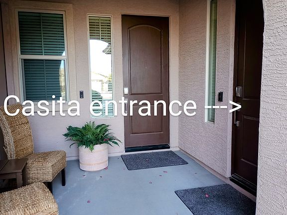 Fully furnished private 1 bd/1 bath casita with 10' ceilings in Blue Horizon neighborhood just off Jackrabbit Trail. Perfect place to spread out if you have temporary work in the area and prefer to avoid a hotel. The home is equipped with all you need... just bring your bags! Dark espresso cabinets, white quartz counters, stainless steel appliances, queen size bed and even a small private side yard for fresh air. Very easy commute to PHX, spring training facilities, 303 corridor and area hospitals. Rent includes all utilities and internet. Home has a WIFI connected smart TV so you can sign into your Netflix or Amazon Prime account. Kitchen does not have a stove, but does includes cooking options with a convection microwave, a hot plate, an Instantpot, an air fryer, a crockpot and a grill. No smoking allowed inside home. This casita is attached to a main home that has it's own entrance and is rented out separately (this casita space is completely separated from the main home and both spaces have their own private entrances). If you prefer working with private owners that value relationships with their tenants, this is your property! A small dog can be considered with an additional $300 nonrefundable pet deposit.