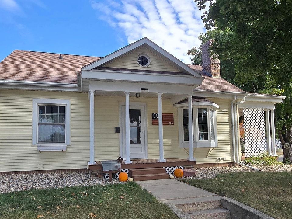 Attractive & well kept single story home with attached single car garage. This home has so much charm & character with the arched doorways, attractive parquet flooring, 6 panel doors with glass door knobs, & attractive tiffany lighting. Formal dining, a living room with decorative fireplace & bay window, 2 bedrooms, & even a full bath with claw foot tub! Door to walk up attic area that could be finished for more living space. Lower level is partially finished with 3rd bedroom with egress, updated full bath & laundry room. Partially finished rec room area & storage shelves. Attached single garage with garage door opener. You will enjoy relaxing on the covered front or side decks. Nice yard on corner lot. Move in ready!
