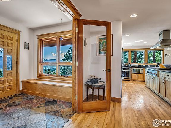 Easy mountain living just 20 minutes above Boulder with amazing views!. This elegant custom home was completely remodeled and features hickory floors, in-floor radiant heat, custom kitchen cabinetry, solid slab granite countertops, high-end appliances and much more. The home is in showroom condition with high-end craftsmanship throughout. Lots of room to entertain and working from home is easy with high-speed internet. Enjoy the wonderful back range and city views from every window. The detached 858 sq.ft. studio is a great space for an artist's workspace, yoga, guests, etc. (the studio was originally built as a garage and can be converted back to a garage) The property is in a sunny, private, and serene setting with National Forest on the NW border.
