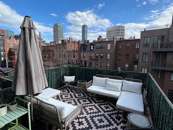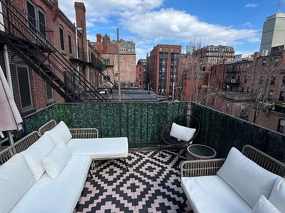 Back Bay - Beacon Street. Sunny 3rd Floor with spacious walk-out Private DECK! Southern exposure & city skyline views. Open-kitchen with dishwasher/disposal, gas stove & microwave. Ceilings fans in both living room & bedroom. Ornamental original Fireplace. Hardwood floors throughout. Spacious bedroom closet and hallway coat closet. Rent includes heat, hot/cold water & sewer. Tenant pays electricity & cooking gas. Located in a very well-managed building with Laundry. Steps to Hynes T stop(green line train), 1 bus(Mass. Ave.), Kenmore T stop(green line train), Newbury St., Charles River, MIT, BU, Kenmore Sq., Trader Joe's, Whole Foods, Star Market, & countless shops, restaurants & cafes. Available May 1st. Rent includes heat, hot/cold water & sewer. Tenant pays electricity & cooking gas. First month's rent($2800), last month's rent($2800), key deposit($200) & broker fee($2800) due at signing. Cats allowed(2 max). No undergrads. No smoking.