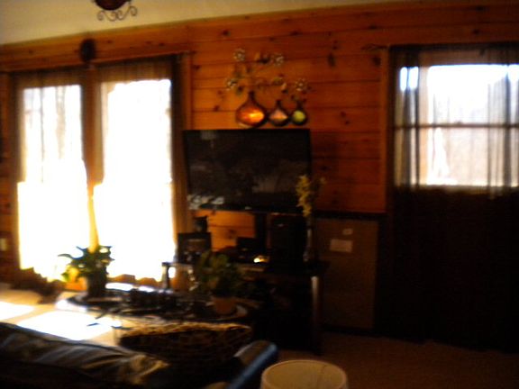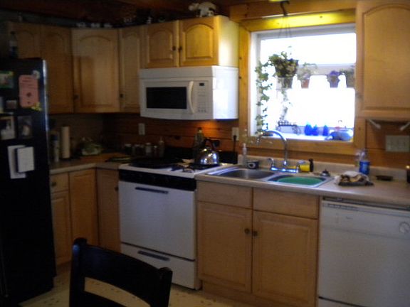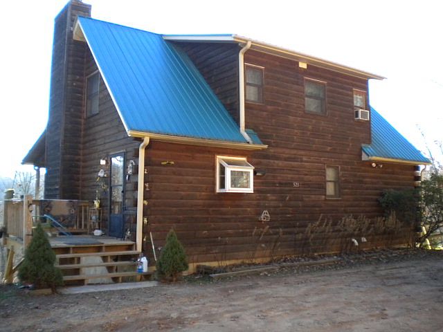 Log home out and private with big views,covered porch, gas log fireplace, upstairs open loft. Poured wall, full basement Work area, bath rough in. Whirlpool tub, some pine wood floors. Year round home or a great get a way for a second home
