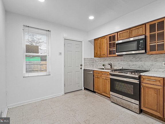 This beautiful end unit row-house has been fully renovated, Ready to move in, this home has 4 spacious bedrooms, 1.5 baths. updated kitchen with backsplash and all stainless-steel appliances! The basement is unfinished perfect for storage. This home features recessed lights through out the house, washer and Dryer included. The back yard is fully fenced. Scheduled your showing now!!