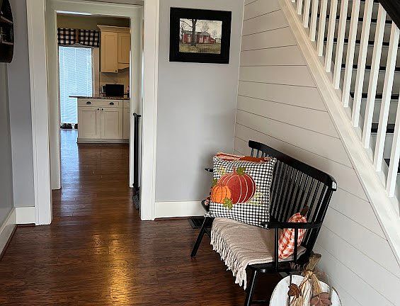 Detached two-car garageCozy family roomTall ceilingsFenced backyardSanctuary for entertainmentRich hardwood floorsBuilt-in bookshelves
