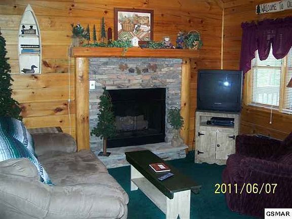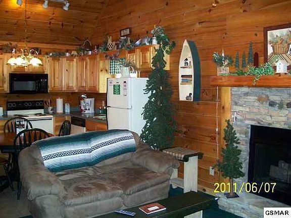 Convenient log cabin less than two miles off the Parkway in Pigeon Forge. Large master bedroom with whirlpool tub. Living room has cathedral ceilings and a cozy stacked stone gas fireplace. Fully equipped eat-in kitchen. Second bedroom is currently used as a game room with a bumper pool/card table. Hot tub in screened rear deck with hillside views. Bottom deck off the master bedroom with a swing. City utilities and cable. Resort pool in season. Sold furnished with some exceptions (see addendum). REDUCED over $20,000 for a quick sale! Sold "AS IS" at this low price. Brokered And Advertised By: PRIME MOUNTAIN PROPERTIES Listing Agent: DAVID R. HACKNEY