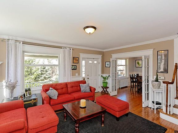 USDA 100% Financing available ! Beautifully remodeled Craftsman w/amazing heated oversized 3 car garage w/huge finished entertainment bonus room over the garage w/separate electric , heat , C/A! The beautiful home features: hardwoods, spacious kitchen , 3 bedrooms+ den, diningroom w/custom trim, gorgeous livingroom w/fireplace w/woodstove insert, porch, deck, sunroom, finished basement feat. bathroom, French doors, public water, beautiful landscaping, Averill Park schools! Taxes $5134.55