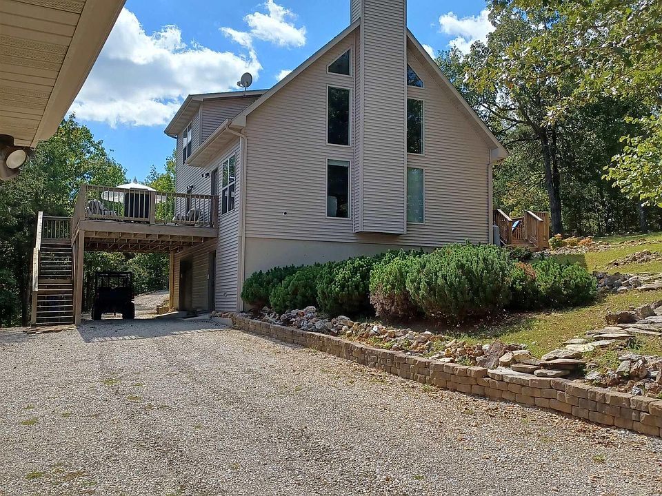 Hidden in the forest, at the end of a paved country road, is this fantastic & ultra private property. Literally minutes from shopping, yet all you can hear are the birds along Panther Creek below. Soaring stone fireplace in the great room with floor to ceiling glass opens onto 14x22 entertainment/BBQ deck. 2 large main level bedrooms. Cedar lined closet is just one of the many extra touches you will find. Upper level master suit looks out across the tree tops. Sumptuous bath, huge walk in closet. Your private oasis. Lower level family room/storage/toy garage will need some finishing. Detached 4 car drive thru garage/shop, plus open pole barn boat/equipment storage. Meticulously maintained. Wildlife galore. Must see.
