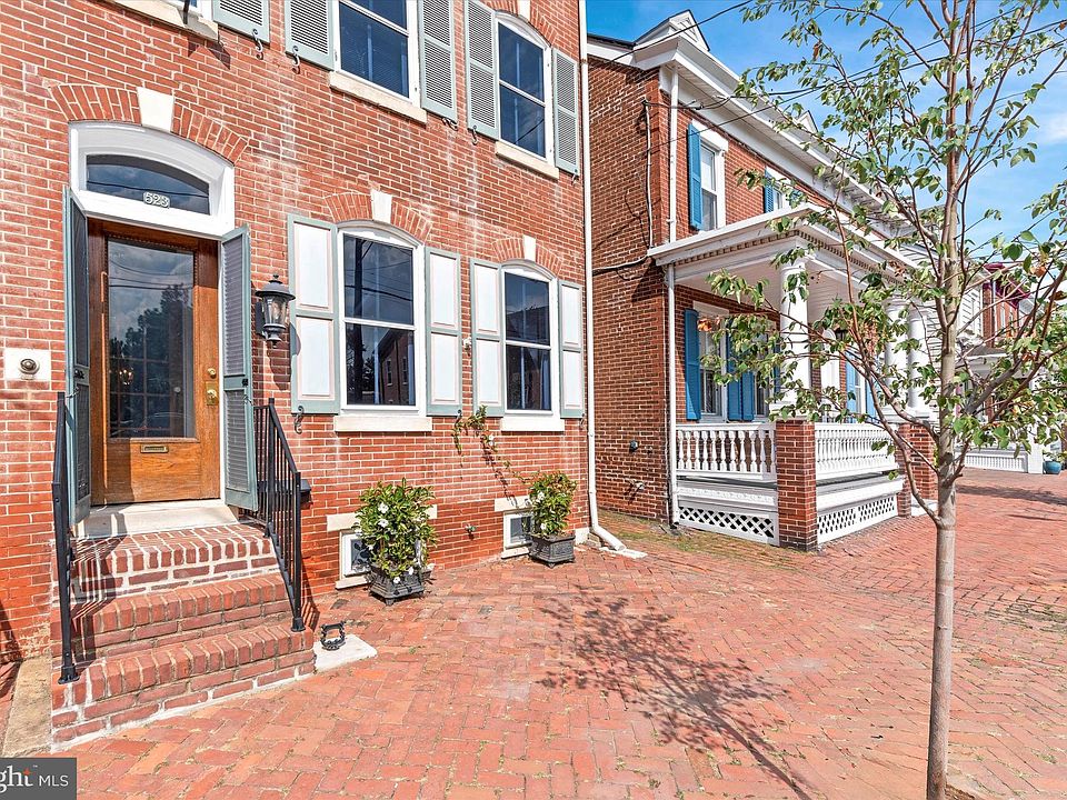 Few opportunities arise to take ownership of a private residence as stately, charming and well-maintained as 523 Delaware Street in Historic New Castle. From its handsome street elevation to its rear beautifully manicured gardens, the home is both imposing and comfortable. Its entrance is a vestibule opening to a twenty foot hall and the main staircase to the upper levels. The very spacious living room is private and to the right of the front hall. Wood floors, high ceilings, beautiful staircases and lots of light accentuate the home. The main level living area includes the private living room and a formal dining room ( off which is tucked away a convenient main level half bath ). The kitchen is a chef's delight, with gas cooking, ample cabinetry, S/S appliances and lots of counter space ( including a peninsula ). Back stairs to the second level are accessed here, as is the staircase to the clean, bright, full, usable basement. Beyond the kitchen is a fabulous enclosed porch with a ceiling fan, overlooking landscaped garden beds.The second level hosts two cheery bedrooms and a large family room ( its flat screen television will convey with the home ), a lovely renovated full bath and a large well appointed laundry room with lots of storage and clothes rack space. The back staircase from the kitchen accesses this level. The next upper level is home to a great master suite retreat. Privacy and lots of space, including a beautiful full bath with a whirlpool tub and a walk-in closet. A vaulted ceiling adds drama and a Velux skylight additional light and a window to the sky. The home is semi-detached, offering access from Delaware Street to the spacious enclosed porch. The rear gardens are lush and beautifully maintained in a fenced -in, private setting. The two car parking pad just beyond the gardens is a great convenience. Although the county records note it is an historic home ( dating it to 1920 ), its cornerstone, one of its great architectural features, dates it to 1883. You'll enjoy a front seat to parades, steps to the public library and the post office, short strolls to restaurants, museums, galleries and Battery Park from this gracious home. It is conveniently located a few miles from I-95, the Delaware Memorial Bridge and access roads to all major Eastern Corridor points, yet seemingly a world away. Summer concerts on the river, tall ship visits, tennis and pickle ball courts, a new basketball court and kiddie play lot are some of the warm weather recreational opportunities provided in Historic New Castle. Enjoy Saturday Markets on the Town Green ( now through October 12 ). The Spirit of Christmas, A Day in Old New Castle, Separation Day and Art on the Green are just a few of the city's special annual events. All this and more awaits you in this gem of a home in one of the East Coast's most charming riverfront towns. Make plans now to visit 523 Delaware Street, a splendid balance of historic charm and modern amenities!