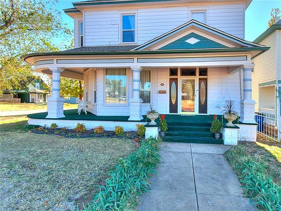 This GORGEOUS Queen of the Prairie is a show stopper! Brick street leads you to this 1908 Victorian beauty! From the wrap-around porch to refinished, original hardwood floors & trim throughout - you will be delighted! A GRAND foyer as you enter highlights the original wood staircase & trim! Beautiful living area is surrounded by floor to ceiling windows & an electric fireplace! Gorgeous, solid wood POCKET DOORS access a huge formal dining room. Kitchen has been remodeled & includes granite counters, gas stove, ss appliances, movable island & access to laundry room & half bath with tons of storage! One room downstairs is currently used as an office, yet nicely sized & has a closet so can be used for a downstairs bedroom. Three other bedrooms upstairs - all with PRIVATE BATHS! Current updates include: ROOF, WINDOWS, INT/EXT PAINT, REFINISHED FLOORS & IRON FENCING! Back yard has wrought iron fencing, fenced/gated flagstone patio w/koi pond, sidewalk to detached garage & basement access.