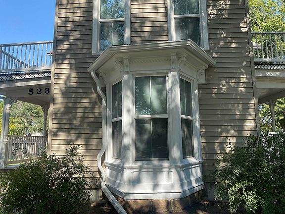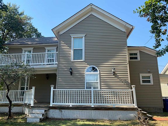 4 car garage with insulated walls built in May of 2021. Roof over porch replaced 2022. Sewer line clean out Sept. 2022. This home has some unique features. It has some modern updates with freshly painted doors and around bay windows. Kitchen comes with refrigerator, electric stove/oven, dishwasher, microwave and garbage disposal. 3/4 bath on main floor with a new shower head. Utility room has a sink and storage space. Upstairs there is a reading nook or a gaming area. There are 3 bedrooms with 2 balconies to enjoy. There is a front porch, side porch, plus a covered deck in the back. Basement was repaired by prior owner in July 2023. Seller will not warrant appliances.. 3 garage openers go with the property. 2 story home.