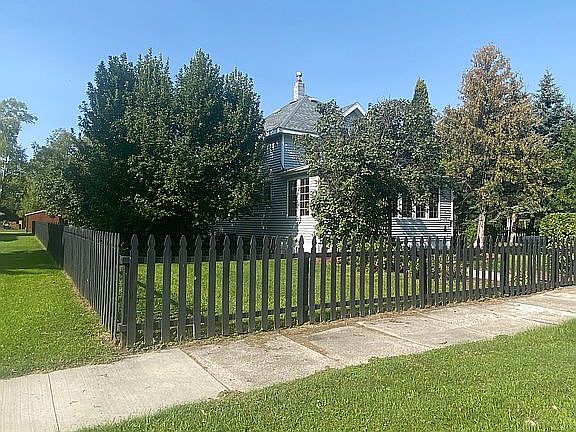 Love the farmhouse style look and feel? This home is designed for you! You are welcomed onto the property with a wrap around picket fence, a private yard with mature trees and plenty of garden-space. The main floor offers an open-concept kitchen, living and dining rooms that have beautiful built-ins and open out to a large deck with more entertainment space. The finished front porch adds additional rest and reading space, as well as a great place to remove boots and enjoy a cup of coffee! There is an office, laundry room and half-bath that complete the main level. The second story offers 3 bedrooms, and a full bath. The basement gives you plenty of storage room for all the other necessities we like to collect! The three-stall garage is detached, but close by the back door entrance. Offers plenty of space for all of your things, and is heated to enjoy it all winter long. In addition to the garage is a 10x14 garden shed. You'll appreciate every inch of this property!
