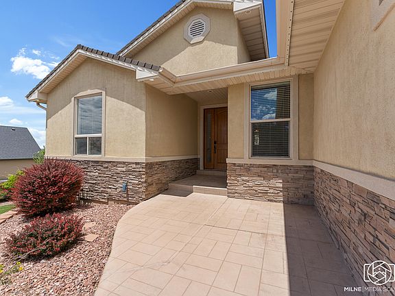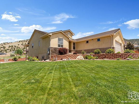 Welcome to this beautiful south-facing home located on the golf course in Cedar City. This well-cared-for property features a walk-out basement, recently painted interiors, and new carpeting upstairs. The lush landscaping enhances the home's curb appeal, creating a serene and inviting atmosphere. Inside, you'll find an oversized three-car garage, perfect for vehicles and additional storage. The basement boasts a cozy wood-burning fireplace and a spacious family room, ideal for gatherings and relaxation. Additionally, there are two large storage rooms providing ample space for all your needs. Don't miss the opportunity to own this exceptional home with stunning views and convenient amenities.