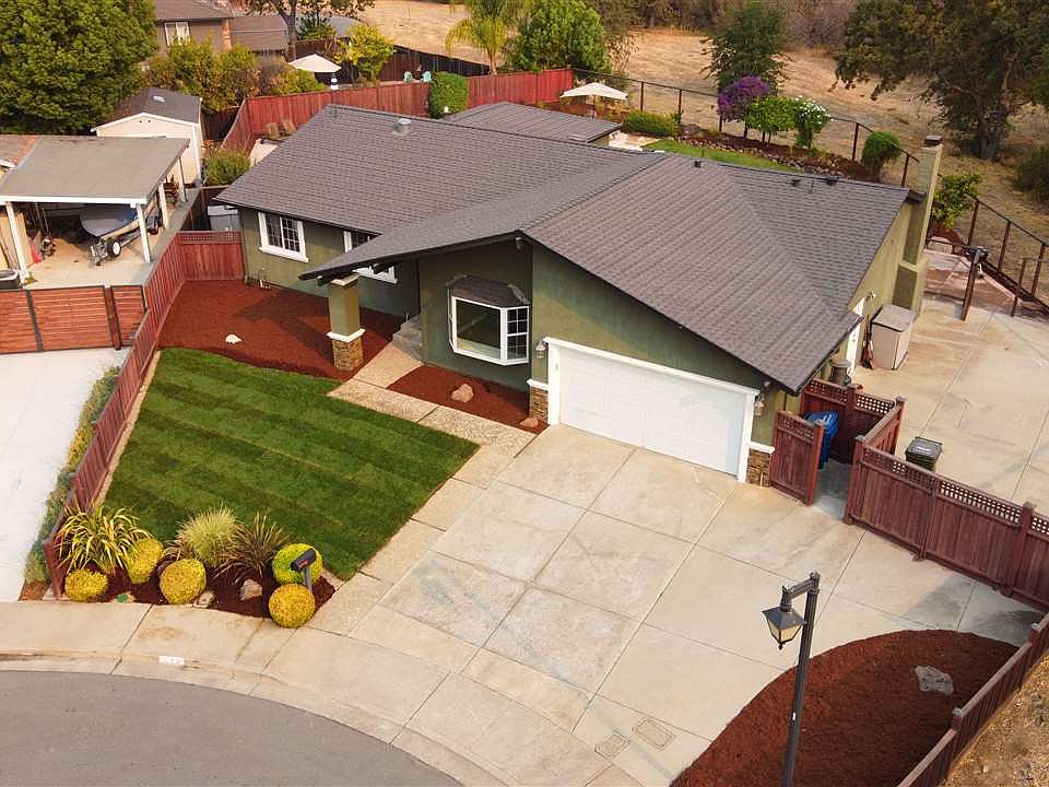 Private location at end of quiet court backs to open space & creek. Mostly gutted and remodeled. Beautiful kitchen with large island, viking range, Meile dishwasher, convection oven/microw, wine refrig, dramatic hood, pantry. Beautiful granite counters, travertine floors. Remodeled master suite w/tiled walls/floors w/dual vanities, beautiful enlarged shower. Updated exterior to stucco siding, dual pane windows/sliders. Brand new roof w/warranty. Newer fences most w/warranty. Beautiful stamped concrete patio. Refurbished gunite & tile pool. Newer hvac & ducts. Recessed lighting, ceiling fans, liv.rm surround sound w/speakers. Freshly painted interior. Newer carpets w/pet barrier. Beautiful landscaping w/fruit trees, auto sprinklers, drip systems. Huge RV parking with gates. New garage door opener motor.