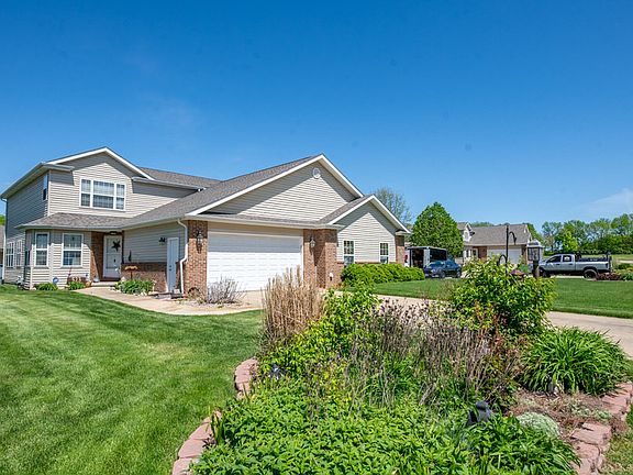 Beautiful 2 story 3 bedroom 3.5 bath condo located in a quiet rural community. Eat-in kitchen w/granite countertops, stainless steel appliances, upgraded light fixtures. Great room with vaulted ceilings and an abundance of windows giving the home a light and airy feel. The open staircase overlooks the main floor. Large primary bedroom on the main floor with walk-in closet and on suite including a walk-in shower. Main floor laundry. The upper floor has 2 large bedrooms with walk-in closets and a full bath. Basement with family room, full bath, egress window, and office. Attached 2-stall garage, irrigation system, deck, and patio. Central Vac System. Updates include: Roof, garage opener, and water heater 2023. Enjoy easy condo living! Schedule your showing today!