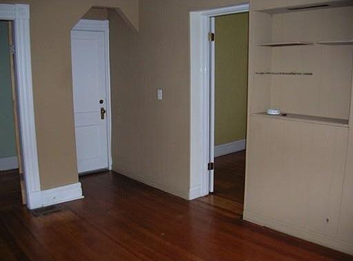 Available now this second floor unit is a 3 BR and located in convenient location with steps to bus stop, walk to shopping and easy access to highway. Quiet home is neat and clean with hardwood floors. Nice pantry off kitchen. Front and side porches. Off street parking. Clean criminal background, credit checks are a must. First, last and security required. No dogs - only ONE indoor cat will be considered.