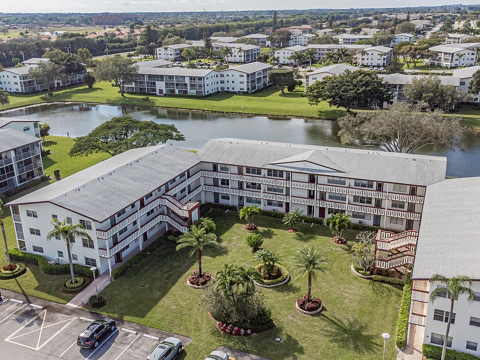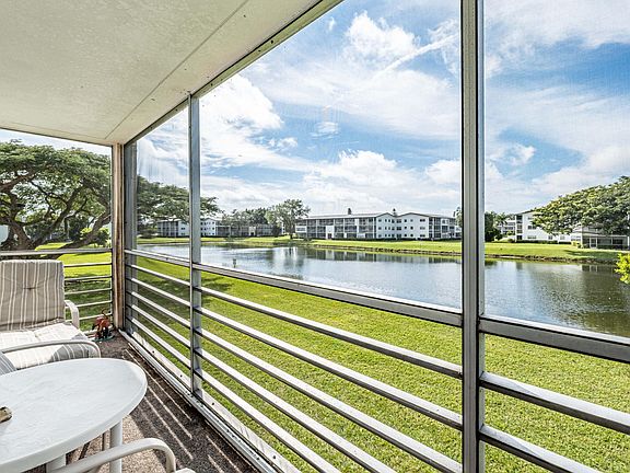 Fall in love with this charming lakeview condominium located in the desirable Century Village gated community. Eat-in kitchen features ample storage and counter space plus vaulted ceiling. Roomy owner's suite features large closet and stylish bathroom. Screened terrace provides a sheltered space for additional seating or al fresco dining. You'll love the Century Village active adult lifestyle, with scores of amenities. Grand 125,000 sq ft clubhouse with fitness studio, party and game rooms and 1250-seat performance theater. Here you'll find year-round scheduled clubs and social events. Outdoors choose from 12 tennis courts, shuffleboard, bocce ball courts and resort-style main pool along with 13 additional satellite pools. Scenic lakes and ponds bring additional beauty to the grounds.