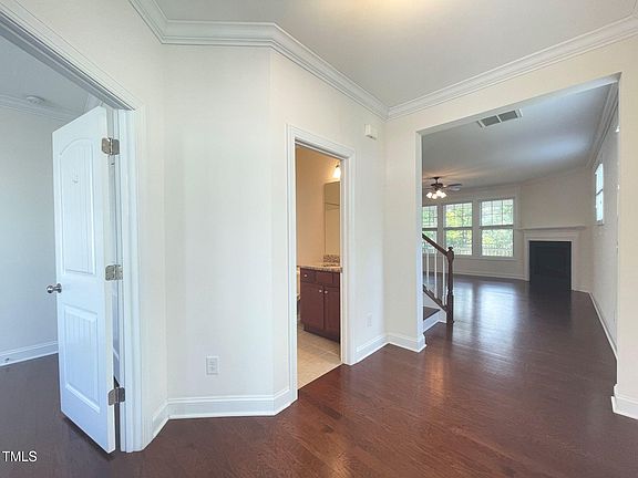 Beautiful 5 Bedroom End Unit Home with 1st Floor Guest Suite and 3rd Floor Loft or 5th Bedroom with Full Bathroom and EV Charger in Garage in Overlook @ Amberly, Cary, Available Now! Features wood floors and a guest bedroom with full bathroom on first floor. Main living spaces on first floor. Family room with gas log fireplace overlooking a fully equipped kitchen with many cabinets for storage, granite counter tops, tile backsplash and center island! Dining area has access to screened patio and backed up to trees. 2nd floor with spacious 2 bedrooms plus a huge primary bedroom with large walk in closet, double sinks with granite countertops, glass shower and garden tub! 3rd floor features a loft and a full bathroom, great as 5th bedroom or for entertainment, home office, study, fitness area etc. Washer and dryer are included. This home does not have access to community amenities in Amberly Subdivision. Mins to YMCA of the Triangle, UNC Wellness Center, RTP, RDU, I-40, I-440, US-540, shopping, & more! Must see! Resident Benefits: Included for just $50 a month, our all-in-one package delivers pest control, credit building, identity protection, rewards, and more essential services that elevate and protect your living experience.