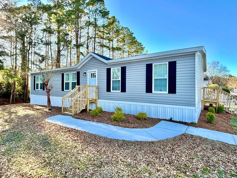 DEAL ALERT - NEW NEVER OCCUPIED - 3 bedroom 2 bathroom manufactured home for sale in the popular Socastee community of Folly Estates in Myrtle Beach. INCREDIBLE LOCATION off Highway 707 - minutes away from The Market Common, Myrtle Beach Airport, Coastal Grand Mall, Surfside Beach, and Murrells Inlet Marshwalk. Close proximity to the beach, multiple public boat launches, and tons of shopping/dining options. This Fleetwood built Heritage Pointe model home features a 1474 heated square foot floorplan with a ton of upgrades. Gourmet kitchen is a chefs dream complete with brand new stainless steel appliances (fridge, dishwasher, range), tons of upgraded 42" ontario white shaker style cabinets with matte black hardware, long deep stainless steel drop sink with pull down faucet, range vent hood with white ice tile backsplash, calcutta marble style formica countertops and an enormous center work island/breakfast bar with a designer lux mango countertop overlooking the main living area. Formal dining room space off kitchen provides plenty of room for the entire family and garners a ton of natural light from the back sliding patio door. Also features a deep closet for additional storage needs. Vinyl wood flooring, crown molding, and recessed LED lighting throughout the entire home. Upgraded bathrooms include matching white porcelain sink vanities with matte black hardware with a tub/shower combo in the second bathroom and a walk-in shower with glass door in the master. Oversized master suite comes complete with a walk-in closet off main room and additional double sided closet within the master bath. Open laundry room features washer/dryer hookups, built in storage and door entry access - great separate space to act as a mudroom. If you’re looking to be centrally located close to The Market Common and the beach - the value for this BRAND NEW HOME is unbeatable for the area. Schedule your private showing today! Additional construction features include but not limited to: Vinyl Low E Dual Pane Windows, R-40, R-21, R-33 (ceiling, wall, floor) insulation, Insulated Duct System, 38x82 Craftsman Inswing Front Door, Full View Glass Storm Door, 34x80 Cottage Side Door, 2" Interior Door & Window Moldings, Black Shutters, 40 Gallon Electric Water Heater, PEX Water Supply Lines, Water Shut Off Sink Valves, 200 AMP Service Panel, Light Fixtures at all Exterior Doors, & GFI Receptacles in Kitchen and Baths. Ask Your Agent For Complete List!