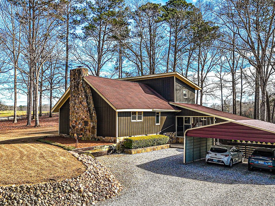 Creekfront serenity meets modern comfort just minutes from town! This move-in ready and beautifully maintained and updated 3BR/2BA home sits on 3.6 private acres of mature hardwoods along 700' of beautiful Tobesofkee Creek frontage, offering peaceful country living only 5 minutes from historic downtown Barnesville. Surrounded by nature, you'll enjoy frequent sightings of deer, owls, and other wildlife. Inside, the home blends cozy rustic vogue charm with modern updates, featuring an open- concept kitchen renovated in 2020 with granite countertops, stone backsplash, and all new appliances. The kitchen flows into a dramatic great room with two-story ceilings and a stunning 12' wide stacked-stone wood-burning fireplace, perfect for relaxing or entertaining. Both bathrooms were renovated in 2023 with new flooring, light fixtures and neutral paint scheme. The master bathroom update also includes a new oversized custom tiled and glass door walk-in shower. A 275-sq-ft fully enclosed sunroom adds additional living space ideal for morning coffee or evening relaxation all while enjoying nature views through the large picture windows. Exterior updates include a new roof and high efficiency windows (2015) and a professionally painted exterior in a modern color scheme (2022). The property also features an oversized 2- car carport/garage with several additional available parking spots as well as a 16' x 40' workshop with power for storage, hobbies or projects. Pre-wired with available Fiber internet and up to blazing 2-gig speeds makes this home ideal for remote work. Conveniently located 8 minutes from Lamar County Schools and less than 5 minutes from Gordon State College. A rare opportunity for privacy, space, and convenience. Whether you're an empty nester seeking a peaceful retreat or a young family looking for space, privacy, and strong schools, this exceptional creekfront property offers a lifestyle that's increasingly hard to find.