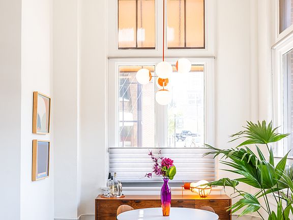 NEWLY REMODELED first floor unit, 1.5 story, with SO MUCH to offer! Completely modern design with bursts of bold color, wallpaper murals and custom lighting work together to achieve a completely unique space! Luxury redesign and renovation by HJM Architects and street access to work/office space, with opportunity to hang your exterior business sign and customize exterior door. This office/work space ALSO has the potential to add a door in the hallway (with a longer term lease) creating a completely private/secure office/business zone up front (or a locked off second bedroom).