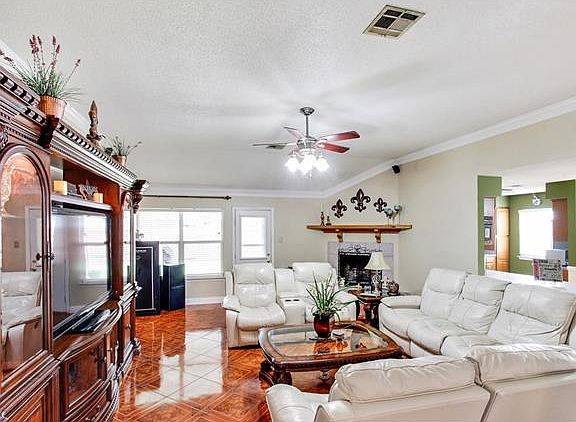 Well kept home on a quiet street. Open floor plan. Large den with high ceilings, fireplace, and crown moulding. Double car garage, two carports, and a nice covered patio.