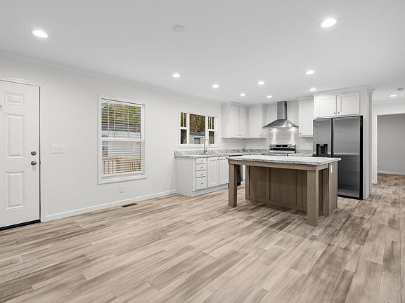 - Window Treatments, Kitchen Island, Stainless Steel Appliances