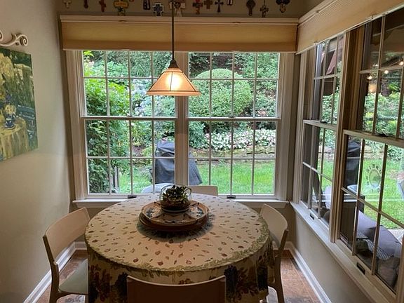 Unique open lay-out! Only one of two such units in the complex! Beautiful natural cherry kitchen with undercounter lighting, glass tile backsplash, Bosch dishwasher, and ceramic tile floor. Updated powder room with high end vessel sink. Updated fireplace with charcoal gray tile surround. Gorgeous hardwood floors in living room, dining room, and family room. Lovely private back patio with brand new awning (2022) and landscaped backyard perfect for entertaining. Spacious gameroom with wall of closets and full bath for guests. Master bedroom has Bermuda shutters and two walk-in closets. Easy access to backyard for pets. HOA covers roof, deck, community pool, clubhouse, landscaping, snow and leaf removal. Turnkey living at its best!