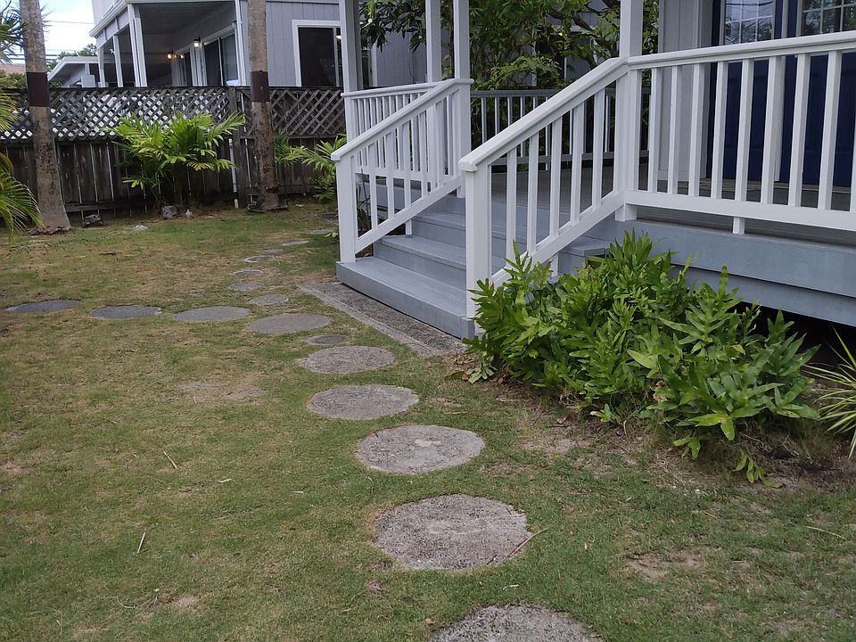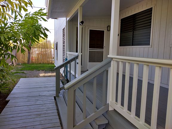 Upstairs unit features both bamboo and tile floors, windows all around, generous closets, bathroom with tub & shower, separate toilet, double sinks, apt-size stacked washer/dryer. Kitchen has mid-size refrigerator, Corian counters and sink, disposal, microwave, toaster oven, conduction burners and compatible cookware. Wall-unit A/C. Private entrance via covered deck and use of side yard with kukui tree. One on-property parking spot. No smoking by tenants or guests. No pets. Utilities not included. Owner maintains HECO and BWS/DES accounts and prepays then bills, prorated, for reimbursement. Internet cable-ready. Solar hot water. Est. monthly utilities: $100-$120. One working parent & 2 teens live separately, downstairs. Quiet hours detailed in lease document.
