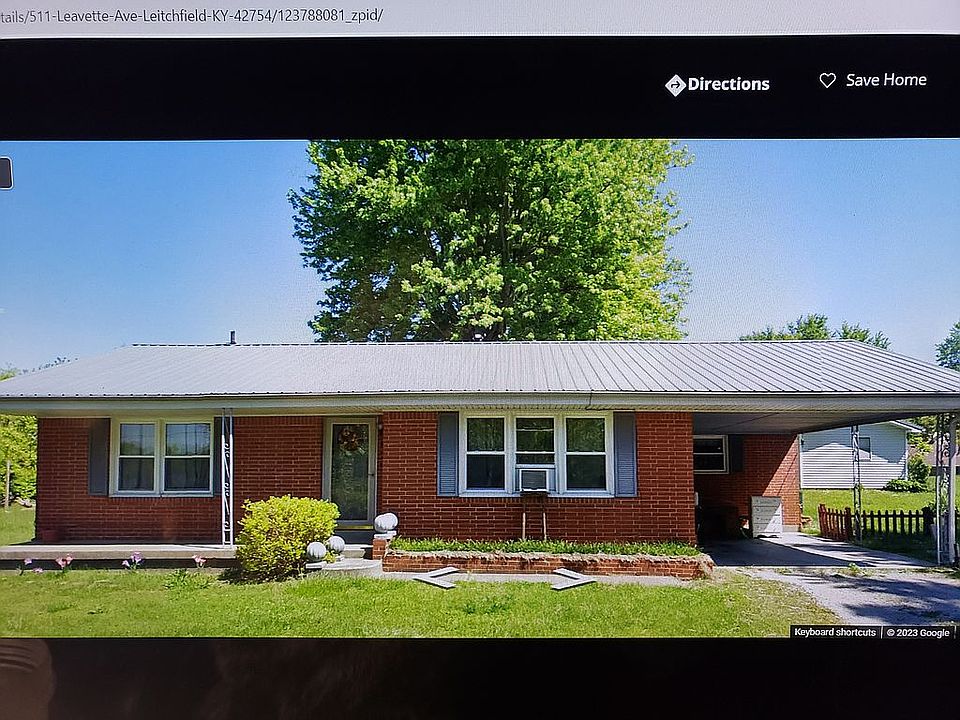 Brick home build in 1965 in City of Leitchfield, KY. 3 bedrooms, 1 full bath, large living room, kitchen and utility room. Flooring: hardwood and vinyl. Windows replaced approximately 2008, metal roof, new kitchen cabinets replaced approximately 2016. Propane heat, no central air conditioning. Carport, deck on back, front porch. Nice lot. Cellar/basement under one bedroom of house. Great fixer upper for the right person looking to flip. House does need work, not move in ready.