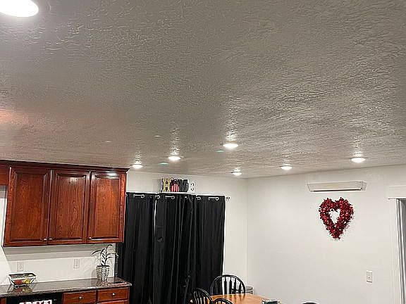 3 bed 2 bath house in a big shop with five acres and water, fully fenced for horses. the shop building is a 77x57 red iron shop. It has two 12wx14h garage doors, 50ft by 30ft concrete drive way, and a 50x15 foot patio off the back. The house has a door into the shop or into the back yard. inside has 3 bedrooms, all carpeted with big closets and built in shelving, the rest of the house is a concrete floor that has been sealed. Cherry wood cabinets with granite countertops.there is also a large pantry. And separate laundry room. Upstairs there is a 20x25 storage area on one side and the other is a large 30x25 family/game room with a wet bar. A total of 2,000 square foot living space while still have a 50x50 foot shop sitting on 5 acres