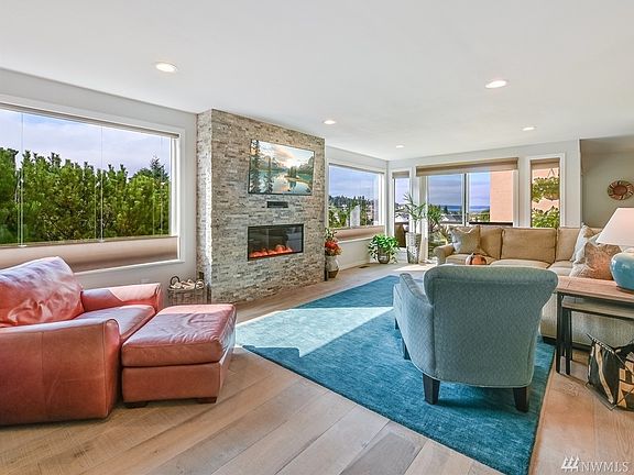 Luxury view living. In the heart of Edmonds. Great layout- cozy up or entertain friends! Cook in gourmet kitchen while you work at Quartz bar admiring view! Light + bright w/ custom blinds. Retreat style features including a unique/gorgeous carbon zero steam fireplace. Watch the ferry traffic from covered deck. New high end appliances, quartz + marble counters, White Oak plank floors, 20lb pad/carpet in beds. New windows, high tech LED lighting, fixtures + NEW $25k rewire/panel. Won't last!