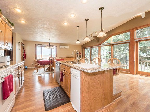 Rare find! This fabulous custom home on 1.5 acres is just waiting to welcome you to a lifestyle of peace and serenity. At almost 5000 sq. feet, this home has enough space that you may never want to leave. The big living room, with its stylish decor and gas fireplace, flows easily into the wide open kitchen. Granite counter tops and upscale appliances are highlighted by updated fixtures and recessed lighting set into vaulted ceilings. A full wall of windows and sliding doors to the spectacular deck showcase the magnificent view onto the park-like yard and vast expanses beyond of fields and mountains. Even the office space and laundry area have a view to die for! The master en suite, with its walk in closet and garden tub, also has access to the deck for even more opportunity to enjoy the view. Two more bedrooms, another bathroom and a conveniently placed powder room off the kitchen complete the main floor's absolute functionality. Head to the basement for custom built-ins, another fireplace and a great room that also has walk-out access to that lush back yard. It's ready for There are another two bedrooms and bath as well as tons of storage space.But if that's not enough space for all your things, check out the huge garage or even bigger shop!This is one you have to see today!
