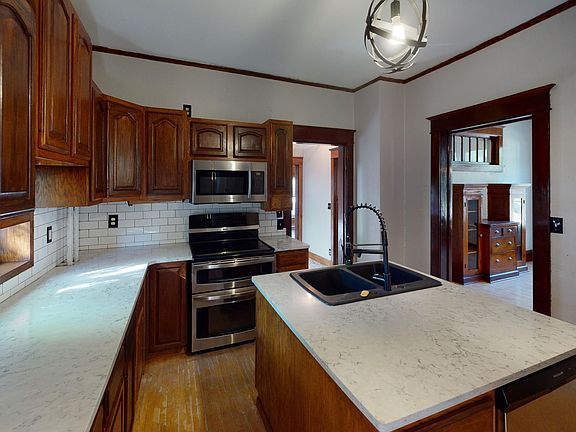 Turn of the Century Victorian home with leaded glass window, maple floors. Walk up attic has tons of potential. Recent improvements include new flooring in both bathrooms, entry and sun room, refinished upstairs hardwood, new kitchen appliances, New Quartz counter tops in kitchen, New light fixtures in every room, Removed wallpaper and new paint in half of the house. $2000 allowance with
