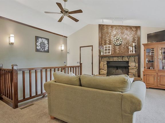 This has been worth the wait! Cul-de-sac lot, new flooring throughout, new paint throughout with neutral colors, privacy fenced yard on .29 acres. Vaulted ceiling, bay window, wood burning fireplace soaring to the ceiling with hearth, mantel, stone and wood accents make a great first impression as you enter the living room. New Tigresso stain resistant carpet and padding throughout the main level shows the pride the sellers have taken in their improvements. Stainless kitchen, solid surface counters, desk, pantry, perfect flow and counter space and all appliances remain. Dining is adjacent to kitchen and sliders to your private backyard offer expansive views of your property. Master bedroom also has vaulted ceiling, sliders to the backyard, master bath with solid surface counters, tile floors, walk in closet and private water closet and shower. Two bedrooms with nice sized closets and a full bath with tile flooring and quartz counter complete the main level. Newer windows, newer light fixtures and seller is offering a transferable home warranty through AHS. Basement also has new stain resistant carpet and padding, new light fixtures, paint and this great space will delight the entire family. Rec room is spacious and offers the entertaining and relaxation area for all. Two full size bonus rooms in the basement have closets and are large enough for exercise room, office, music room or more. Storage is plentiful throughout and this home is clean and ready to move in! Backyard is your own playground and features a stone patio space for gathering, privacy fencing and mature trees and yard is on sprinkler and well. The quality of improvements and pride of ownership you will notice immediately. Great location and tucked in the sought after Westlink addition. Schedule your showing today!